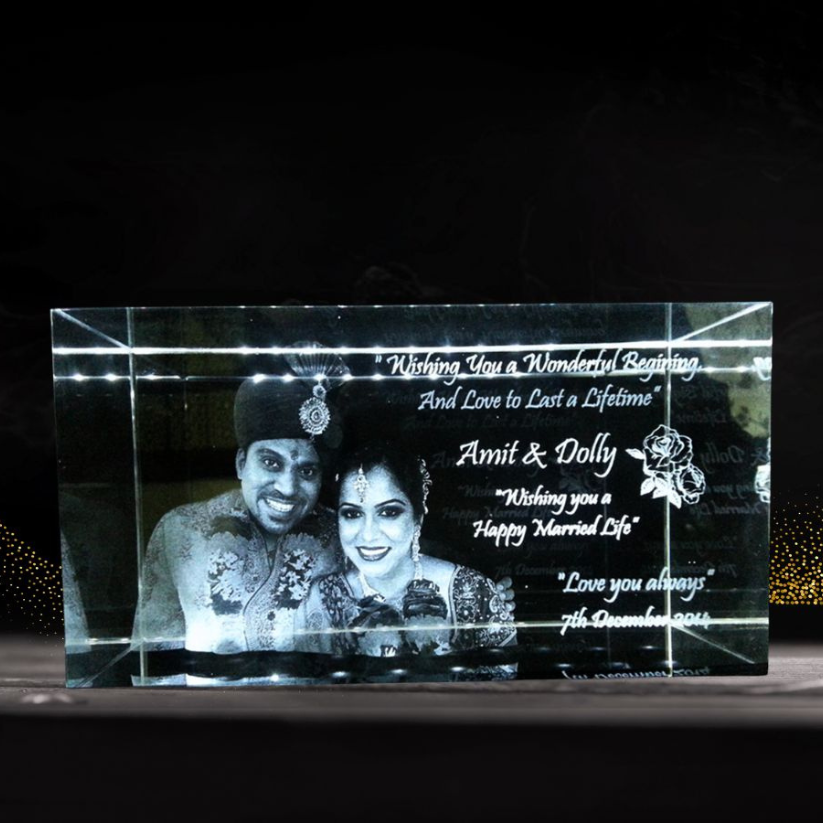 Capture the essence of your special moments with our Couple Face Photo Personalized Crystal Cube Gifts. These stunning crystal cubes are elegantly crafted to preserve your favorite memories in a unique, eye-catching format. Each cube features a high-quality engraving of your chosen photo, showcasing the smiling faces of you and your partner in breathtaking detail. Perfect for anniversaries, weddings, or just because, these personalized gifts make a heartfelt addition to any home or office decor. The light refracts beautifully through the crystal, creating a mesmerizing display that brings your cherished memories to life.