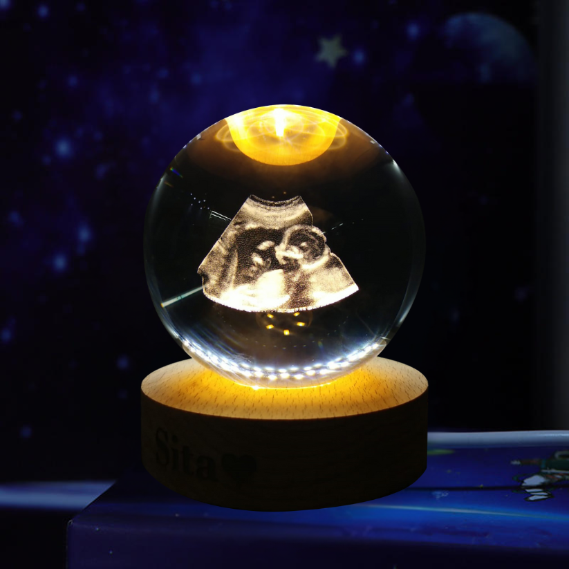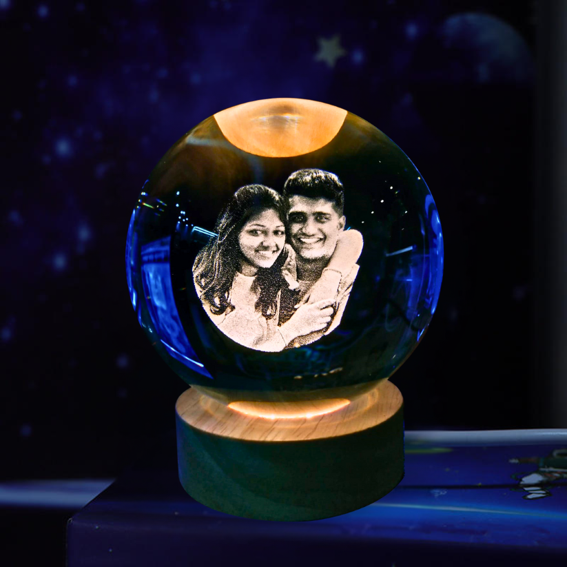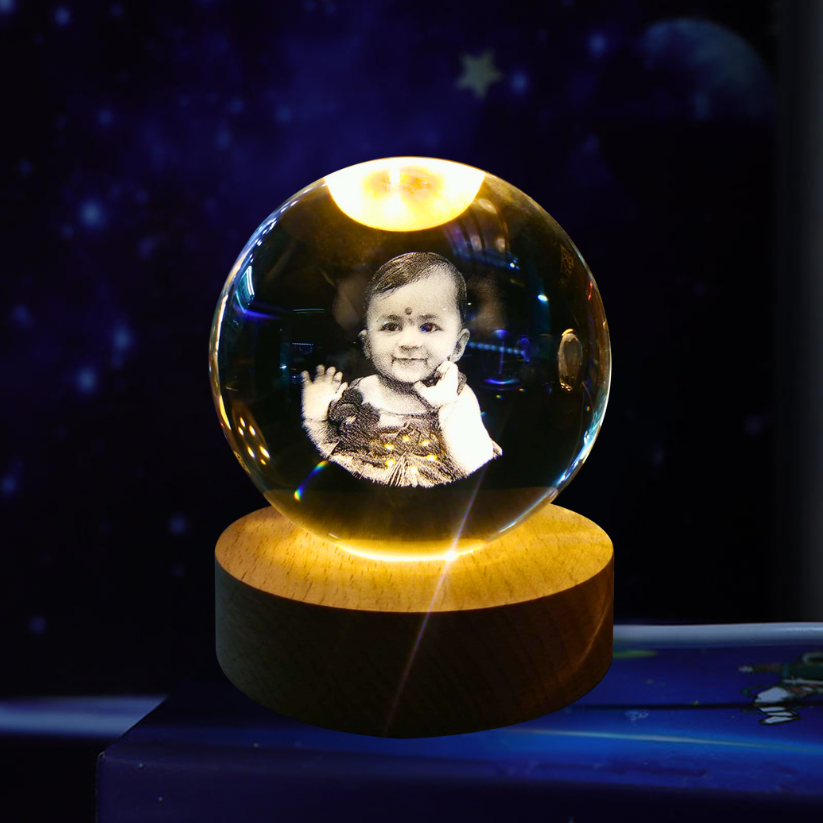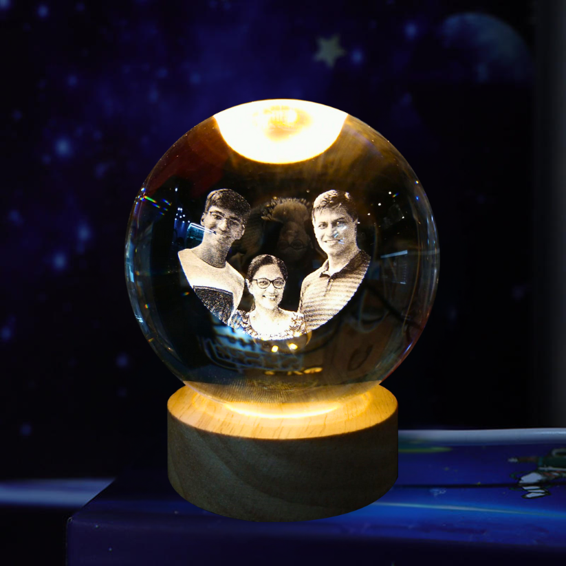 Illuminate your memories with our stunning personalized crystal photo ball. Crafted from premium-grade crystal, this unique keepsake beautifully encases your cherished photo inside a flawless, transparent sphere. Using advanced laser engraving technology, we delicately etch your image within the crystal ball, creating a timeless 3D effect that captures every detail with exceptional clarity.
